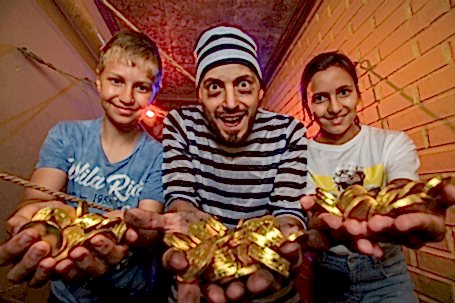 Сын остался в восторге от квеста «Логово пиратов». Решили с женой преподнести ему Pin-Up на день рождения и не пожалели. Вдоволь наигрались в пиратов, покрутили настоящий штурвал и решили все задачки всего за 45 минут. За боцманский свисток и рынду отдельный респект.